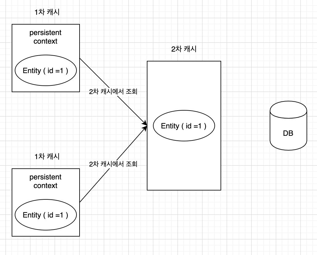 1차 캐시로도 이점이 많지만 애플리케이션 환경은 트랜잭션을 시작하고 종료할 때까지만 1차 캐시가 유효하다
